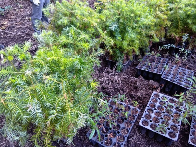 穴あけ機を使い、地球の自然に感謝しながら手作業で植えました。