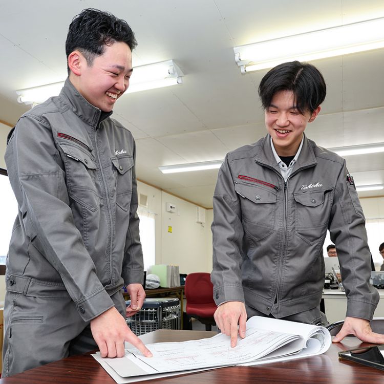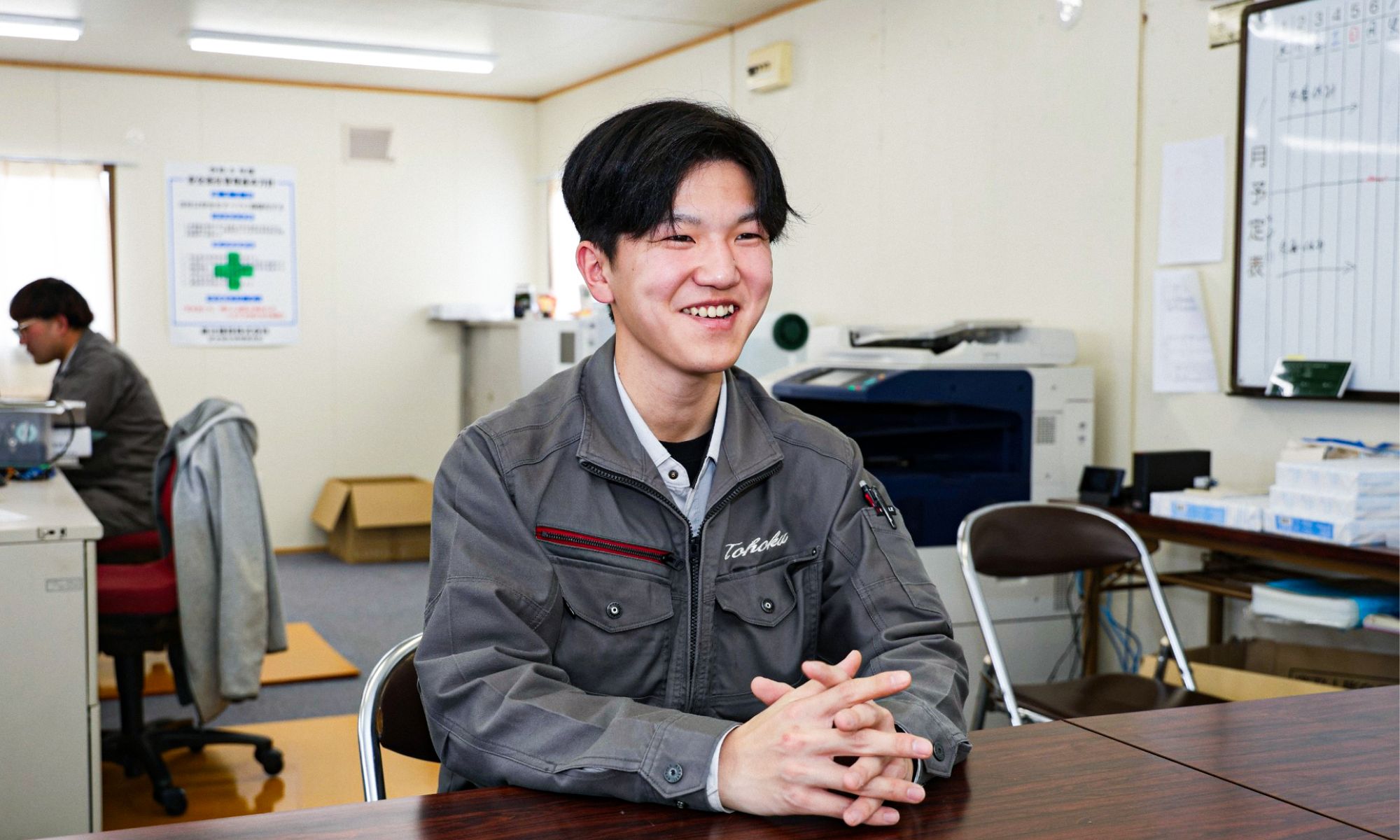 高校2年生の時に東北建設の職場見学に参加し、どの部署も明るく、働きやすそうな雰囲気を感じたこと、そして引率してくれた人事の方が仕事内容や会社について丁寧に説明してくださったことで理解が深まりました。その結果、自分が実際に仕事をしている姿を具体的に想像できたことが、入社を決める大きな要因となりました。